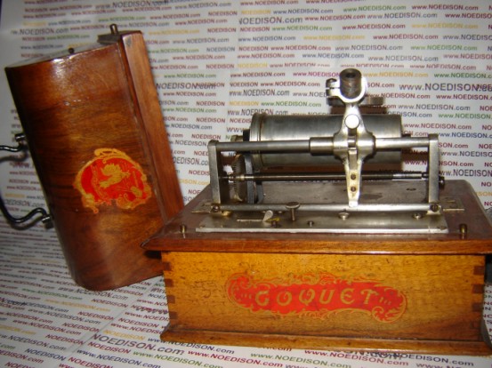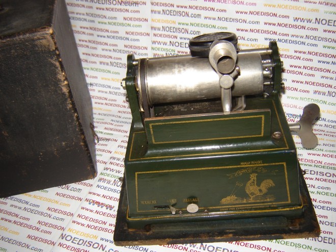 The „Chante-Clair“ can only play cylinders of the “Inter” site, and being equipped with the large mandrel, does not allow the playing of standard size cylinders. Characteristic is the winding-key. The diameter of the horn measures 12". The the absence of a feed screw makes it impossible to record with this machine.